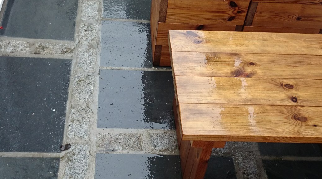 The above picture is of an outside paved seating area created with natural slate paving and granite sets.